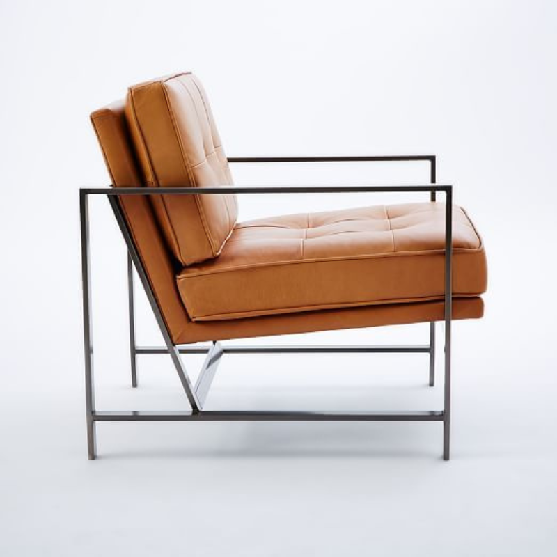 Mid-Century Modern Cognac Leather Armchair with Metal Frame