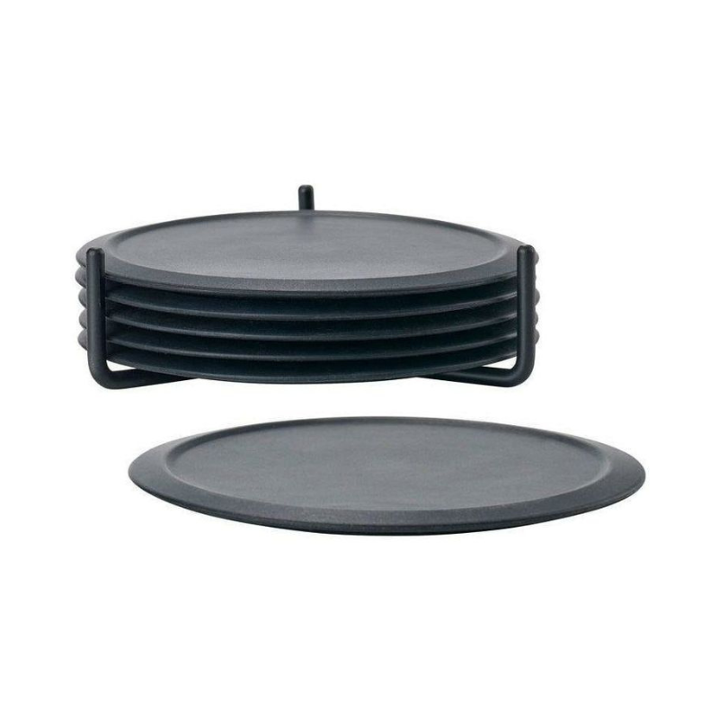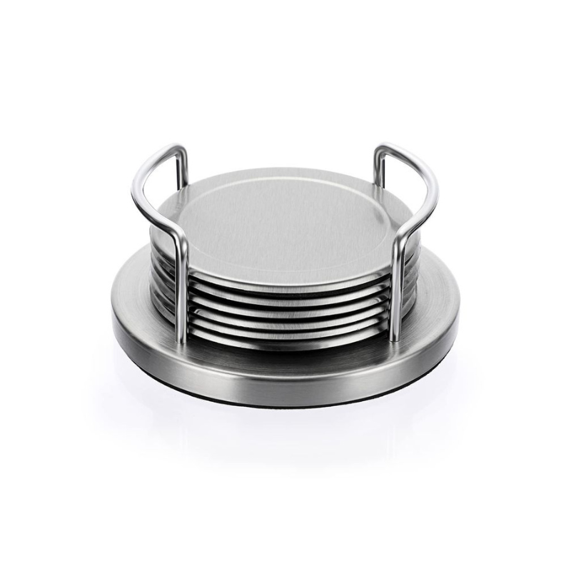 JUXYES Set of 6 Round Stainless Steel Coasters with Holder & Sponge Bottom