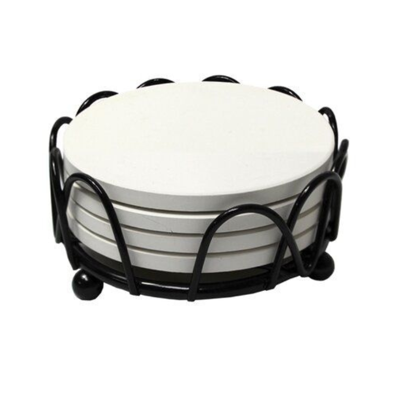 CounterArt Absorbent Ceramic Coasters with Black Wire Holder