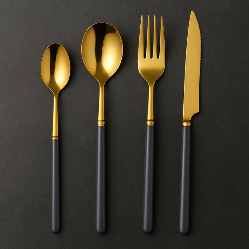 Smoky Luxe Gold and Grey Cutlery Set (4-Piece Place Setting)