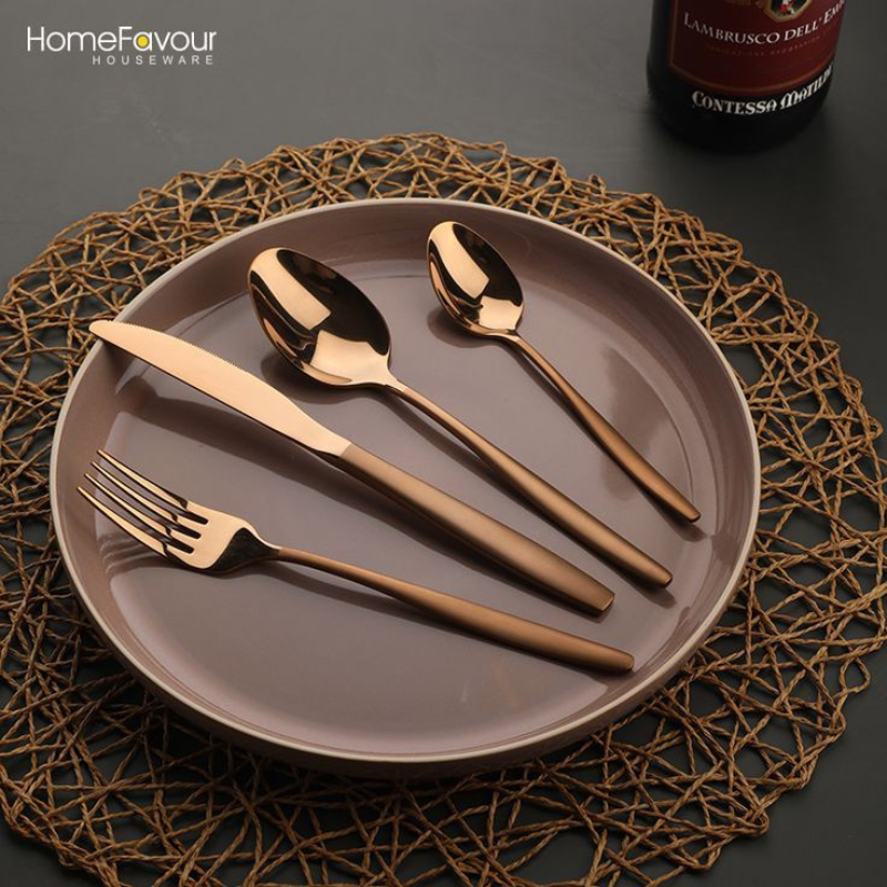 Home Favour 4-Piece Rose Gold Stainless Steel Cutlery Set
