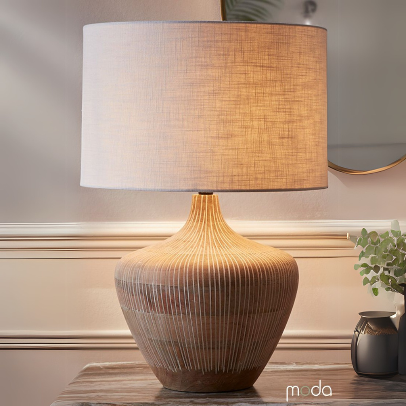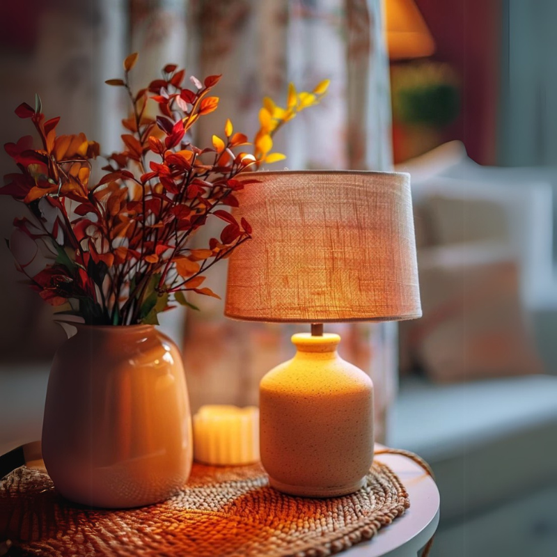Small Table Lamp with an Amber Glass or Ceramic Base