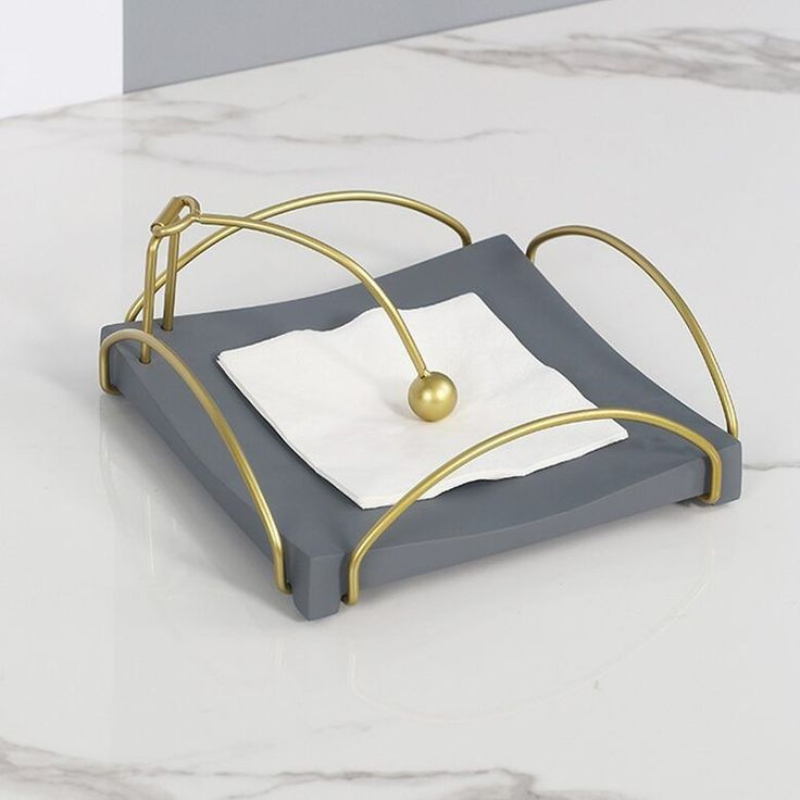 Modern Wooden Napkin Holder with Gold Accents and Toothpick Holder